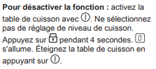 - Si vous allumez ensuite la table de cuisson, la sécurité enfants ne sera plus active.