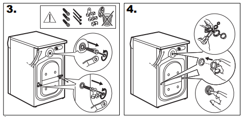 Si vous rencontrez des problèmes pour retirer les boulons de transport, nous vous recommandons une visite par un technicien de service. Attention, il s'agit d'une intervention payante.
