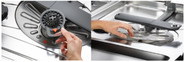 - Vérifiez si les filtres dans le lave-vaisselle sont propres et s'ils ont été correctement encliquetés (les pointes de flèches rouges se touchent).