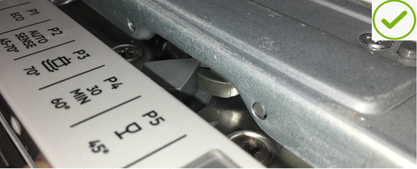 - Mettez le lave-vaisselle à niveau et vérifiez que le diamant se situe au centre des bras de verrouillage de la porte.